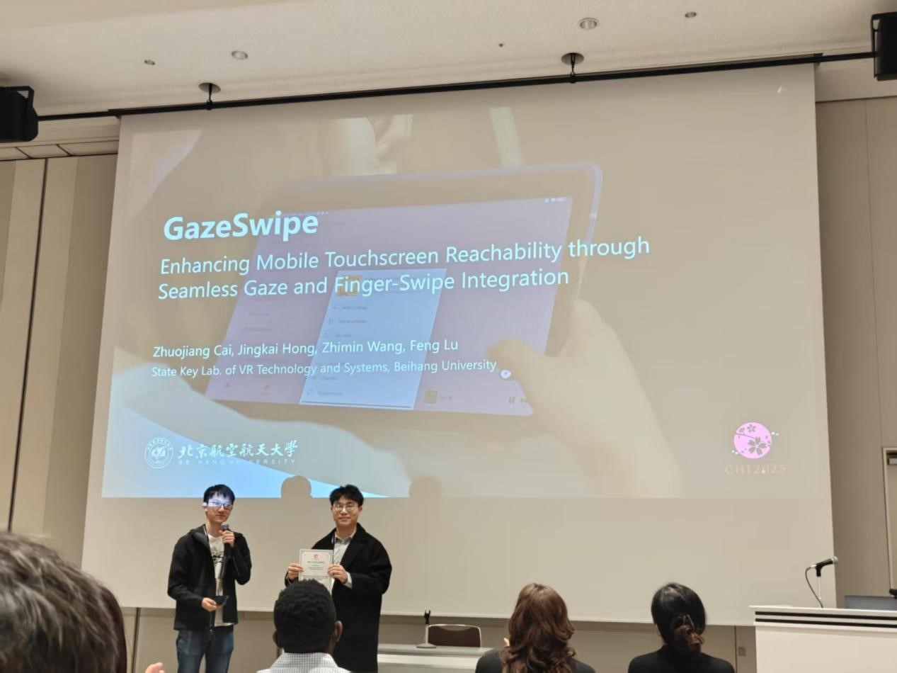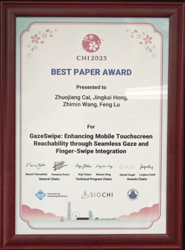 北航虚拟现实技术与系统全国重点实验室陆峰教授团队的研究成果《GazeSwipe: Enhancing Mobile Touchscreen Reachability through Seamless Gaze and Finger-Swipe Integration》从众多优秀论文中脱颖而出,荣获本届会议最佳论文奖(Best Paper warrd,Top 1%)。