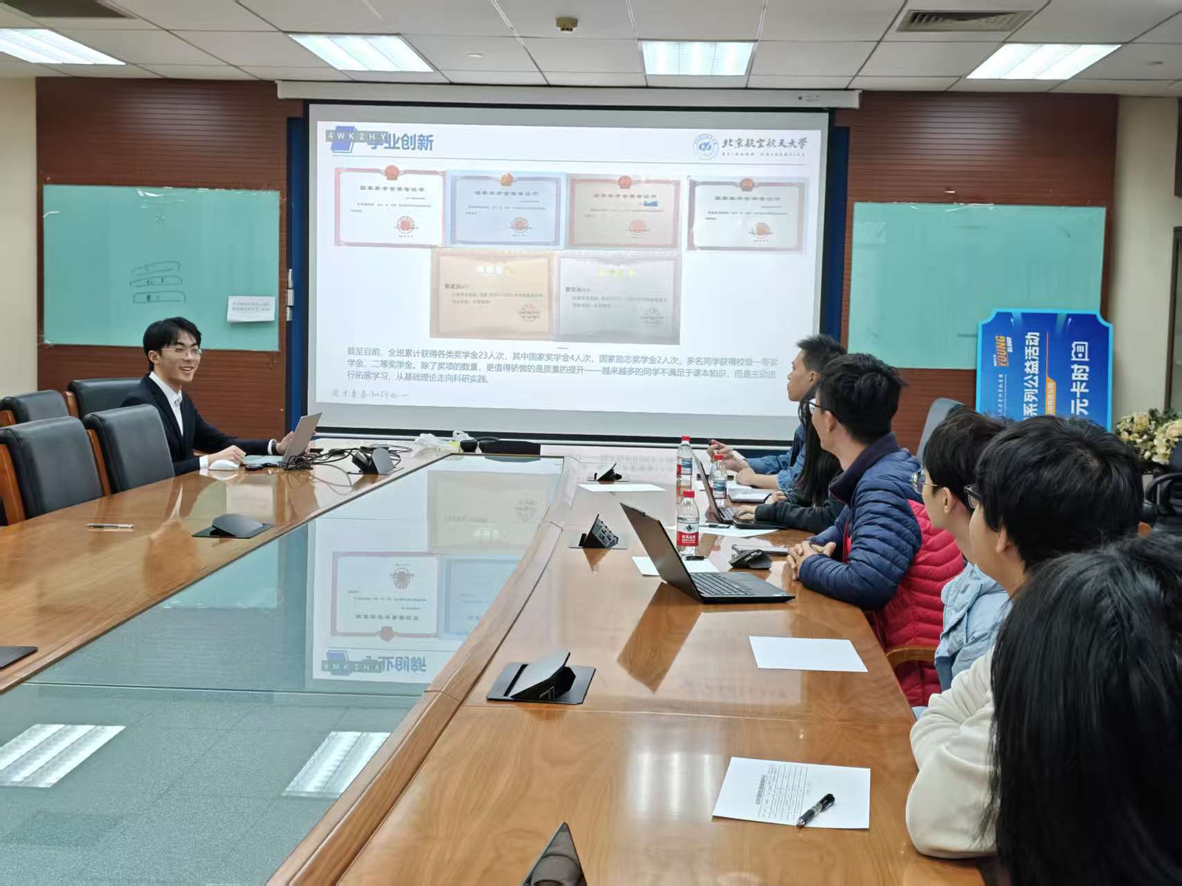 10 月 24 日下午,万象城娱乐awc线路先进班集体答辩在 G849 会议室顺利举行。各候选班级代表依次上台,通过 PPT 汇报与现场应答相结合的方式,围绕思想引领、学业成绩、文体活动、志愿服务等方面,全面展示班级建设成果与特色。汇报内容详实具体,现场表现自信从容,充分展现了万象城娱乐awc线路学子团结协作、积极向上的精神面貌。