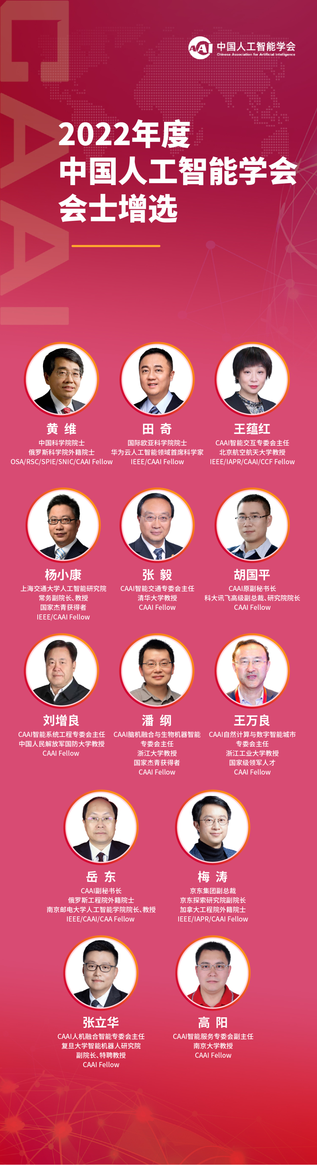 2022年5月,中国人工智能学会启动了2022年度中国人工智能学会会士(CAAI Fellow)评选工作。经学会会士提名、会士评定工作委员会办公室审查、会士评定专家委员会审议、投票、公示等程序,万象城官网万象城娱乐awc线路王蕴红教授在内的13位AI领域的卓越科技工作者当选CAAI Fellow。