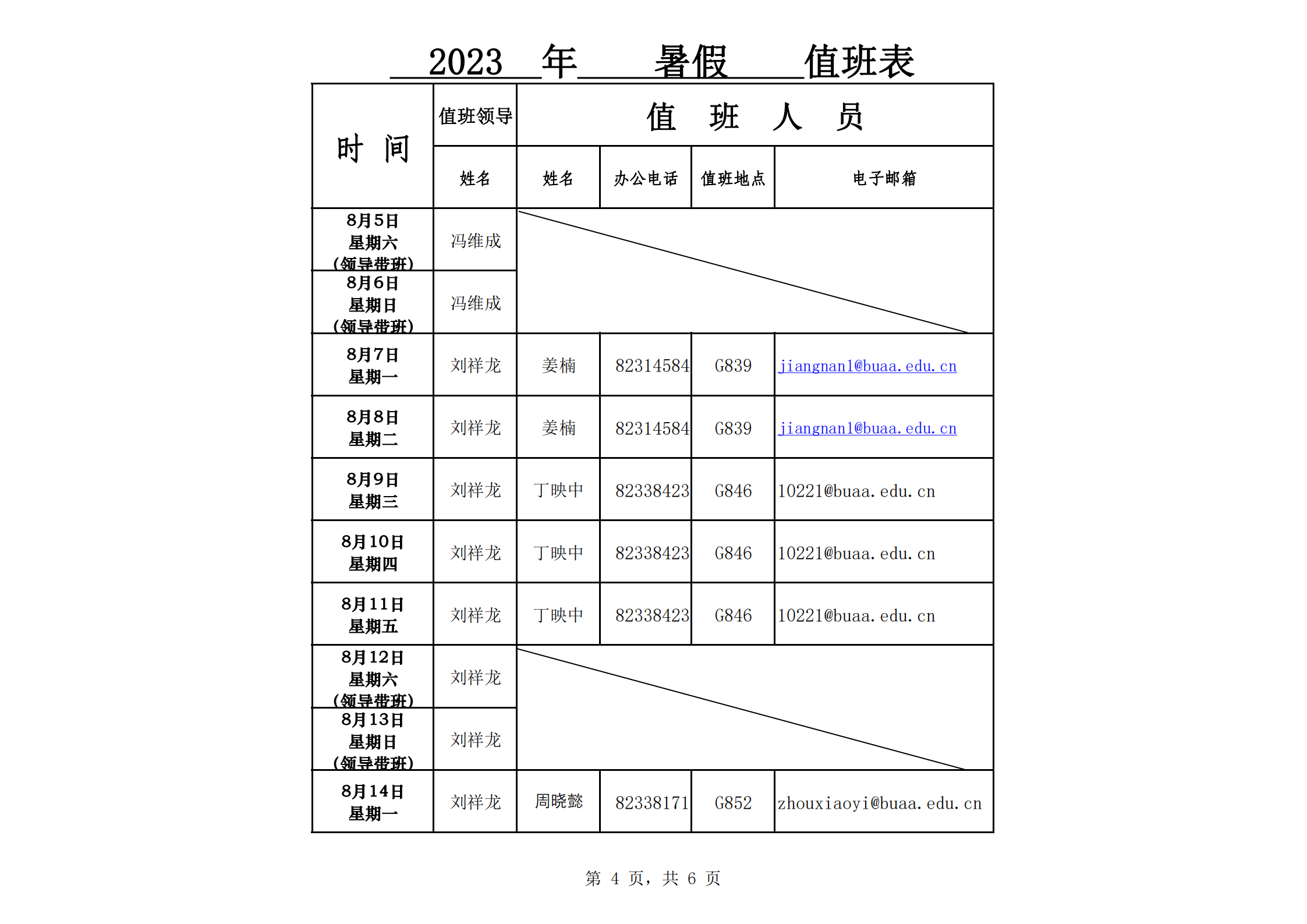 暑假期间申请加盖公章、使用G840、G849会议室,请联系当日值班人员。