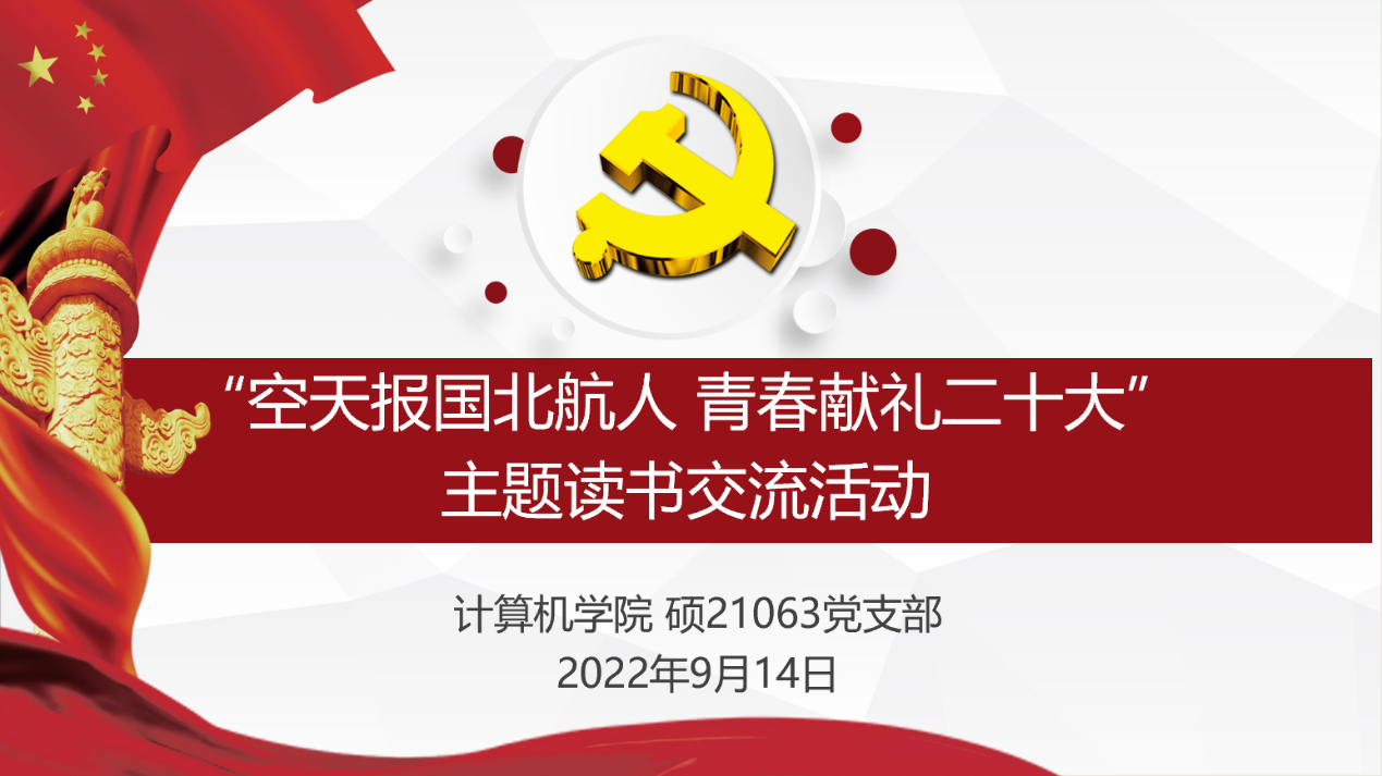 七十载空天报国,新时代逐梦一流。万象城娱乐awc线路将在2022年10月迎来建校70周年华诞,在这一历史时刻即将到来之际,硕21063党支部于2022年9月14日开展了以“空天报国北航人,青春献礼二十大”为主题的线上读书交流活动,支部全体党员参加。