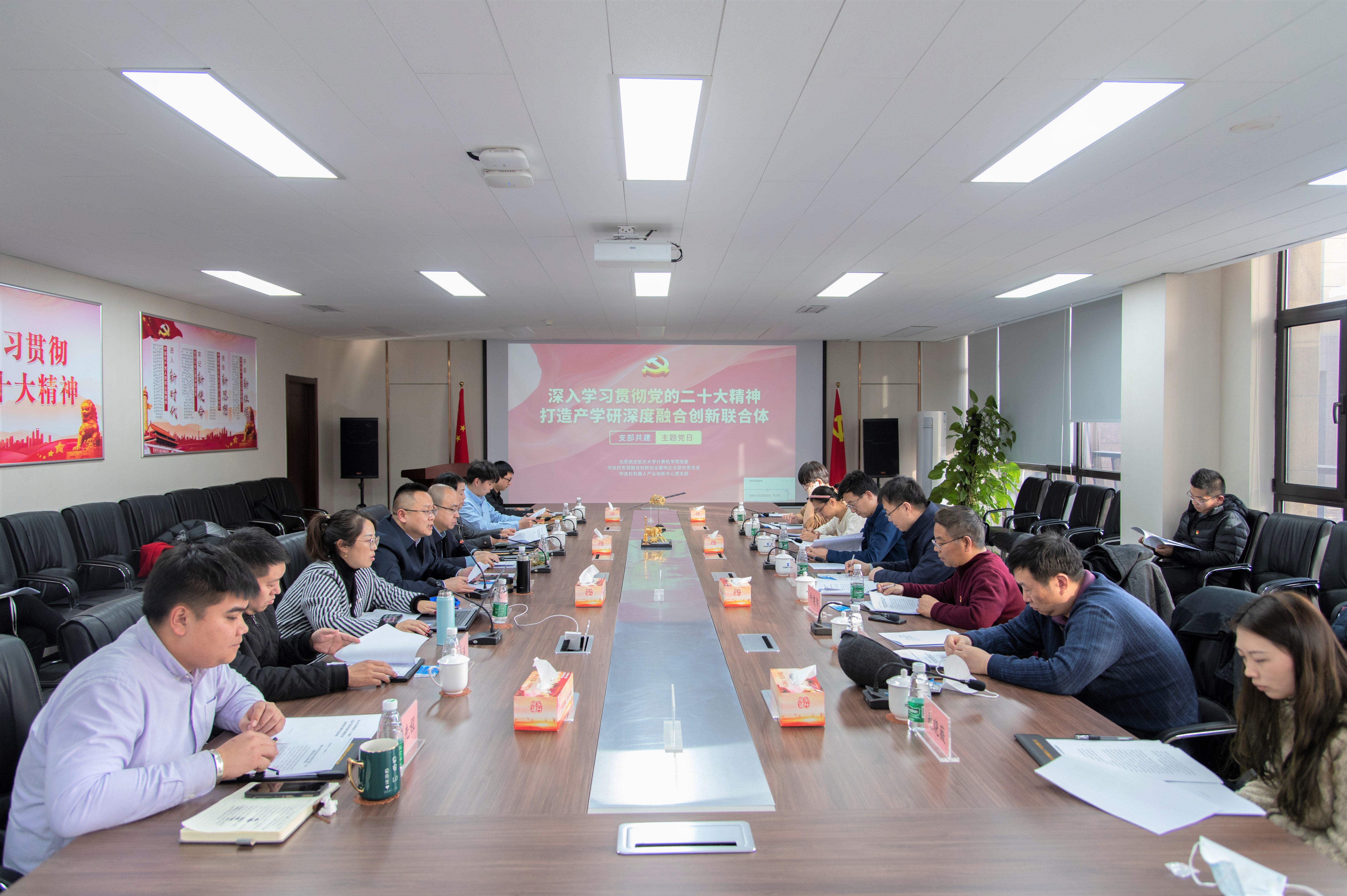 为深入学习贯彻党的二十大精神,推进党支部高质量建设,加强产学研合作交流,2月3日下午,万象城娱乐awc线路万象城娱乐awc线路联合中关村军民融合创新创业基地企业联合党总支、中关村机器人产业创新中心党支部在中关村机器人产业创新中心共同举行“深入学习贯彻党的二十大精神,打造产学研深度融合创新联合体”支部共建主题党日活动。